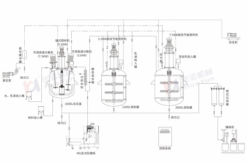 全自動(dòng)涂料生產(chǎn)線 標(biāo)準(zhǔn)型新材料設(shè)備 華運(yùn)攪拌站 灌裝機(jī) 攪拌設(shè)備 袋式過(guò)濾器 拉缸/反應(yīng)釜 軟管泵 經(jīng)典案例 視頻中心