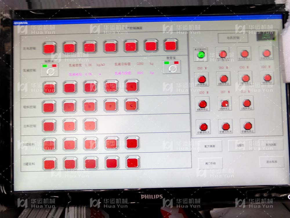 3.自動化控制系統(tǒng)由PLC,工業(yè)計算機及工業(yè)組態(tài)軟件等組成,操作臺帶模擬圖形,鼠標(biāo)點擊即可完成配方設(shè)置及助劑進料等操作。
