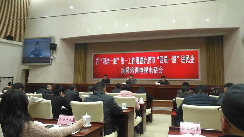 2018年12月19日合肥華運機械制造有限公司受邀參加省四送一服**工作組暨四送一服進民企動員培訓(xùn)電視電話會。